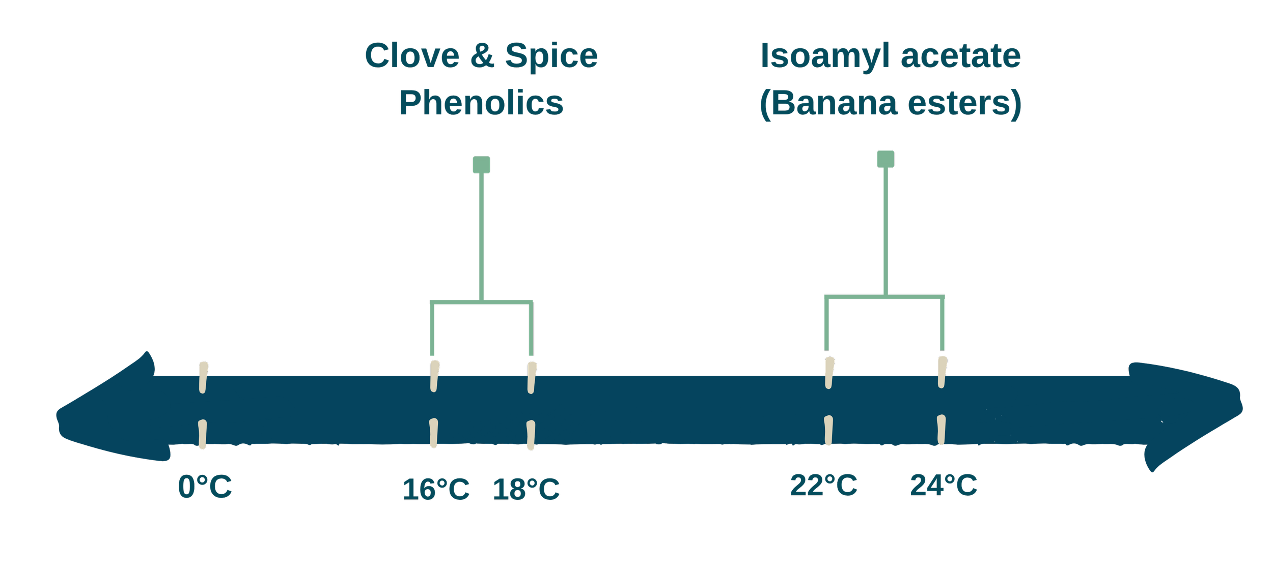 The balance between banana esters and clove/phenolic notes depends on fermentation conditions: